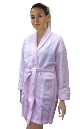 Waffle Hotel Spa Bathrobe with Terry Loop Lining, 100% Cotton, Short, Pink, One Size Review